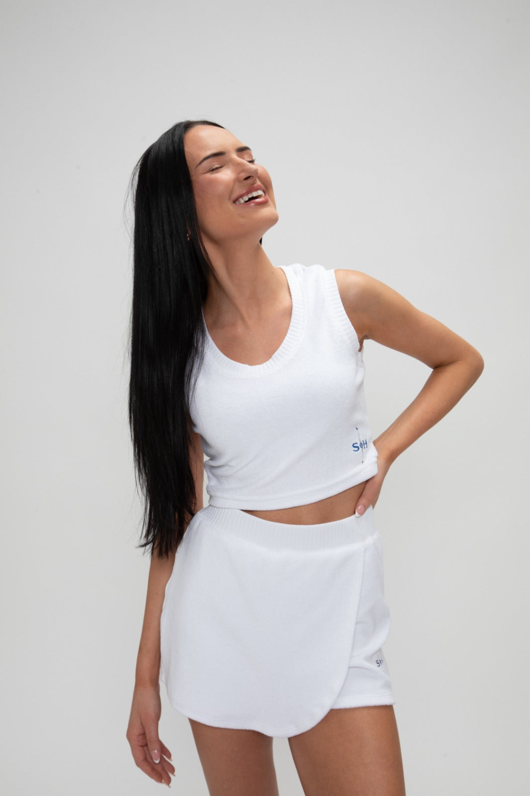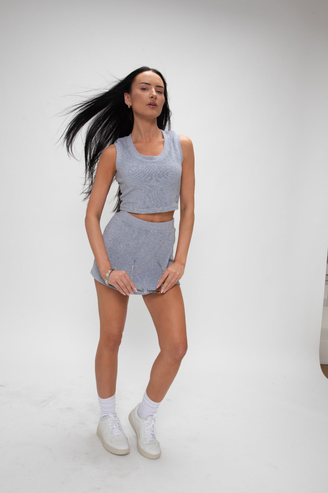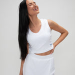 A scoop-neck essential with sky-high vibes, the Cloud Nine Tank floats with you through every moment. Soft, sustainable, and endlessly pairable, it’s your dreamy base layer for long days and late-night layovers. Available in Optic White and Heather Grey. (Pairs perfectly with the Jet Set Pants)